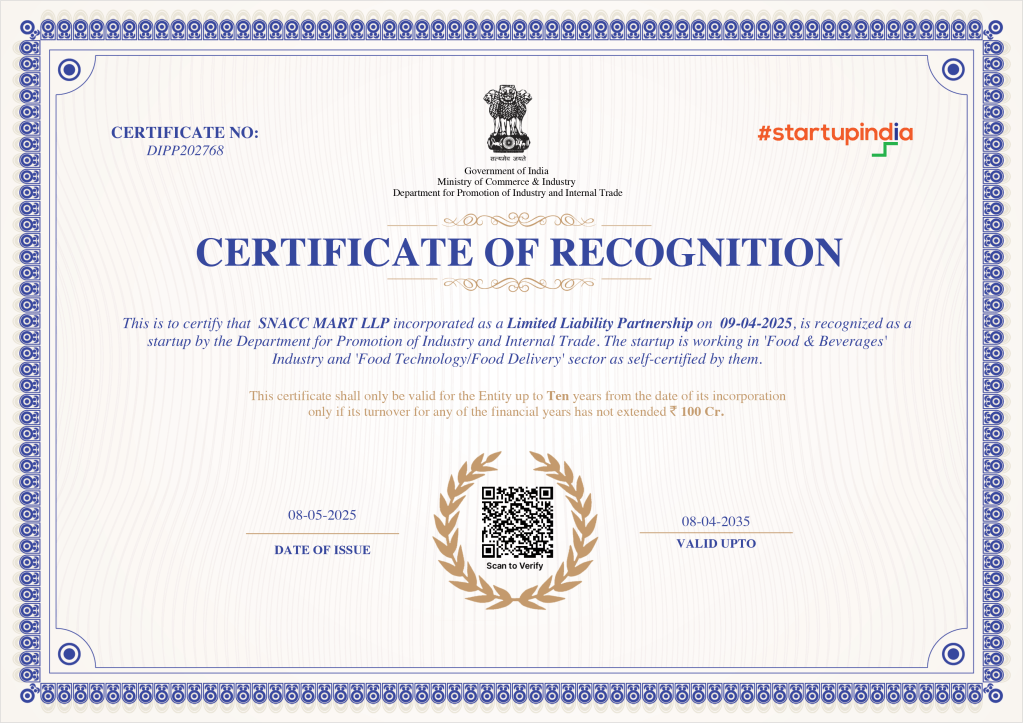 - Snacc Mart Celebrates DPIIT Recognition for Quality and Innovationby Apsara SureshWe’re thrilled to share an exciting milestone in our journey — Snacc Mart is now officially recognised by Startup India under the Department for Promotion of Industry and Internal Trade (DPIIT)! This recognition is not just a certificate — it’s a testament to our commitment to hygiene, quality, innovation, and empowering local communities, especially women.… Read more: Snacc Mart Celebrates DPIIT Recognition for Quality and Innovation